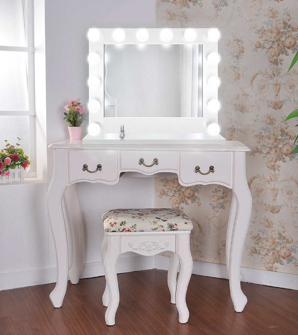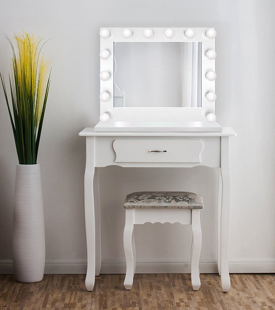 We brought some South Beach sizzle and whitewashed art deco to the Contessa Glam Mirror. The framed border sets this Hollywood mirror apart, reminiscent of classic hotel marquees just off the beach. Clean lines extend all the way to the base; place on the makeup table of your choice or hang directly on the wall. An integrated outlet keeps heated tools close when you need to transition styles from day to night. Use the functional dimmer to get the light just right. It’s as essential as suntan lotion and your favorite bathing suit.