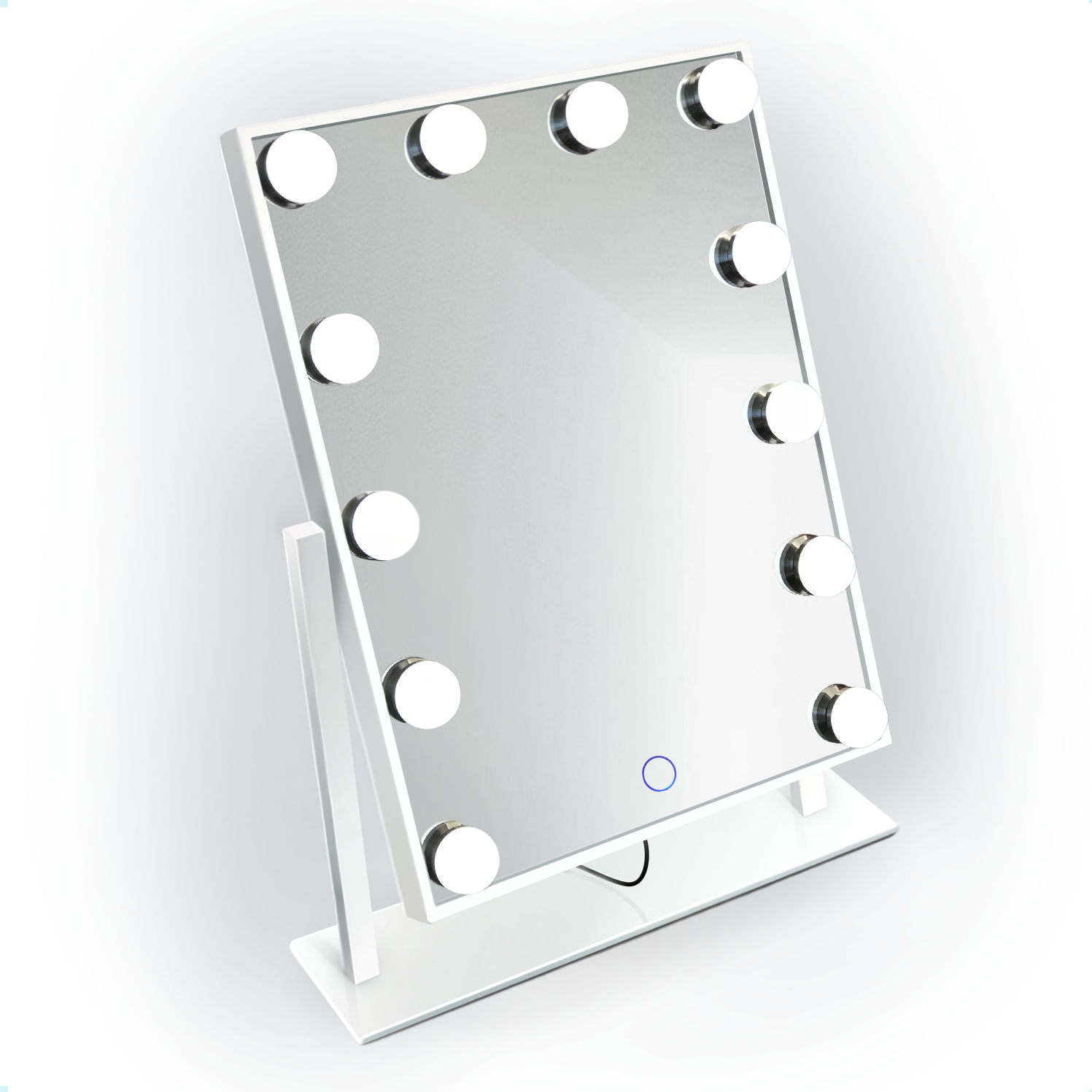 Glam Mirrors uses only the highest quality, distortion-free mirrors. The Monroe Glam Mirror is lined with 14 custom bulbs (with a lifespan of 50,000 hours) to ensure lifelike, accurate color representation. Measured by the Color Rendering Index, Glam Mirrors use bulbs exceeding 90 for professional results.